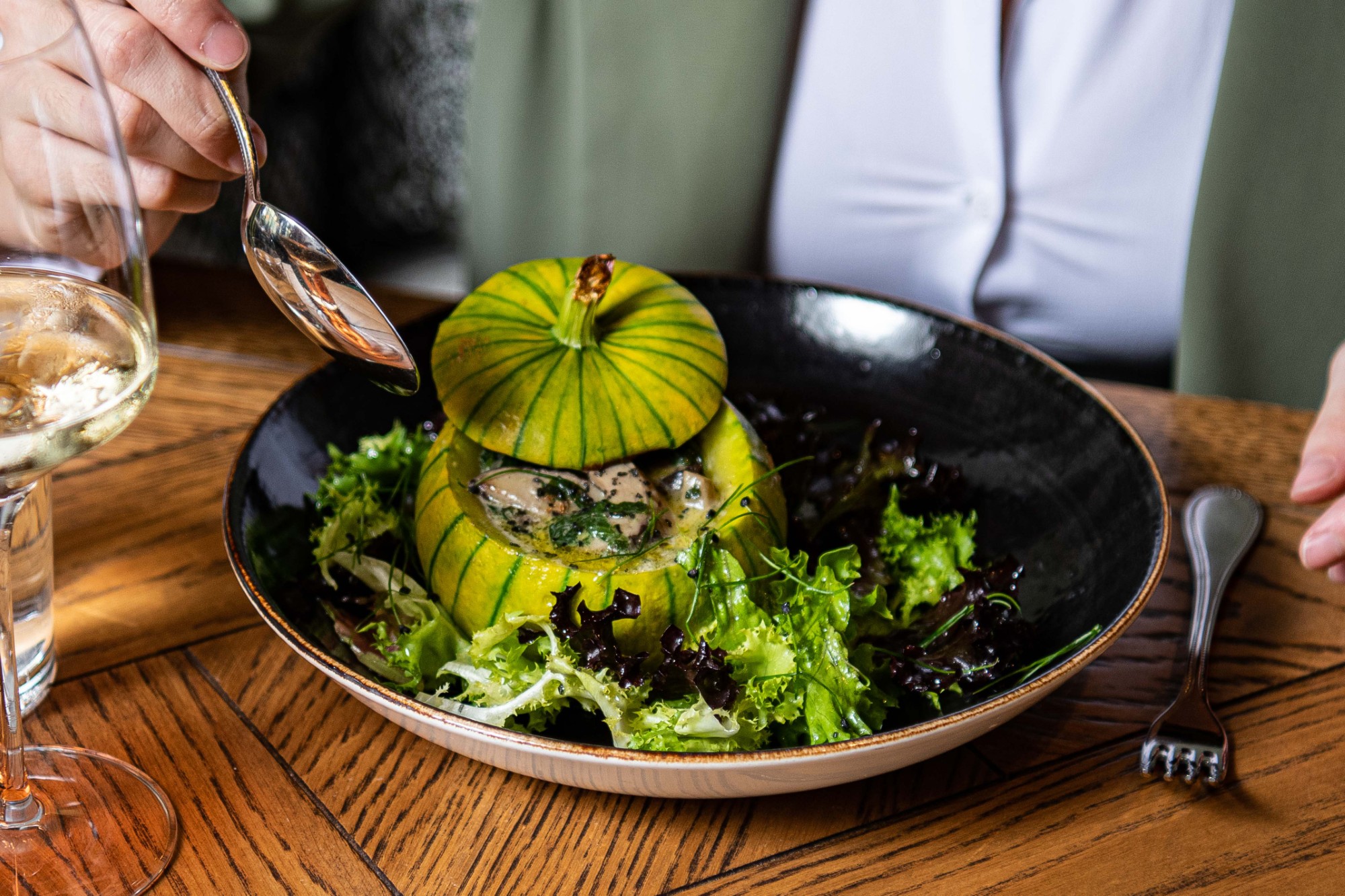 Hier wird geteilt, angestossen und genossen. Lunch entspannt, Dinner gerne etwas länger – begleitet von gutem Wein und Gerichten, die Lust machen, noch ein wenig zu bleiben.